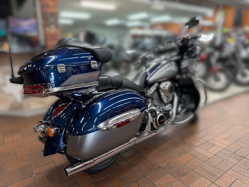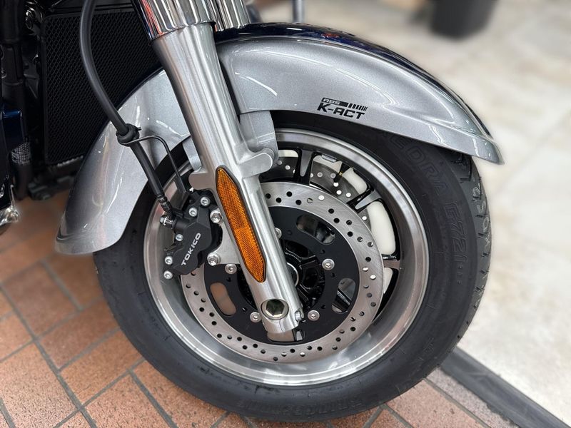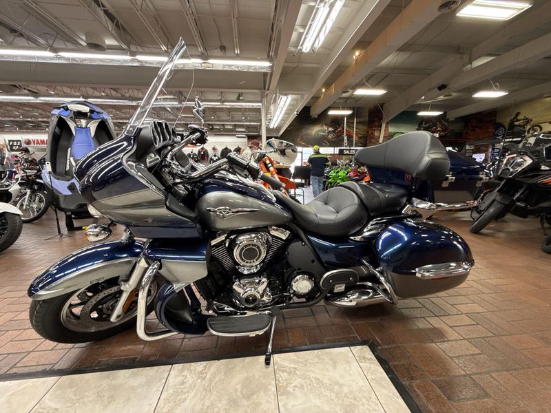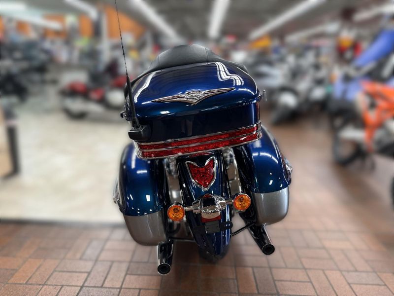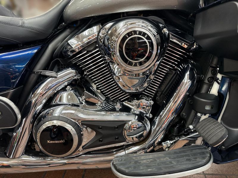 The Vulcan® 1700 Voyager® is the king of Kawasaki touring cruisers. A 1,700cc digitally fuel-injected V-twin engine plus Kawasaki Advanced Coactive-braking Technology (K-ACT) ABS and electronic cruise control help make the Vulcan 1700 Voyager the pinnacle of power and luxury on the open road.