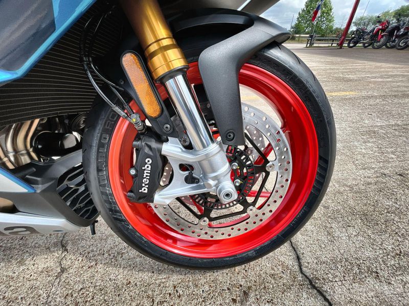 • Standard Features: Full LED headlights and indicators with light signature. Bonded 5” TFT dashboard. Backlit switchcubes. APRC system with 6-axis inertial platform: Engine Maps (AEM), Engine Brake (AEB), Cornering ABS (3 maps and Rear Wheel Lift-up Mitigation), Traction Control (ATC), Wheelie Control (AWC), Aprilia Launch Control (ALC), 5 Riding Modes. Cruise Control (ACC). Aprilia Quick Shift (AQS). Metal Braided Brake Hoses