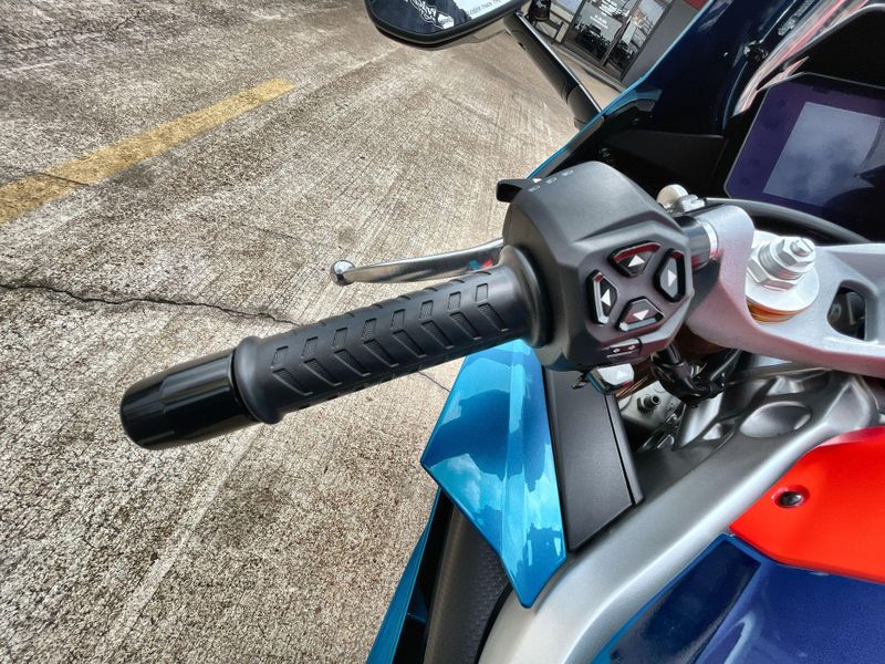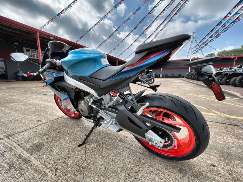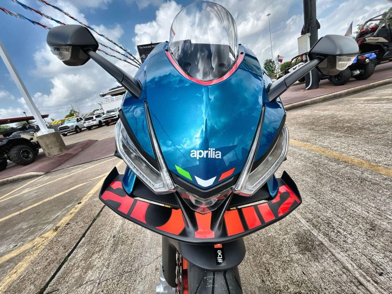 • Standard Features: Full LED headlights and indicators with light signature. Bonded 5” TFT dashboard. Backlit switchcubes. APRC system with 6-axis inertial platform: Engine Maps (AEM), Engine Brake (AEB), Cornering ABS (3 maps and Rear Wheel Lift-up Mitigation), Traction Control (ATC), Wheelie Control (AWC), Aprilia Launch Control (ALC), 5 Riding Modes. Cruise Control (ACC). Aprilia Quick Shift (AQS). Metal Braided Brake Hoses