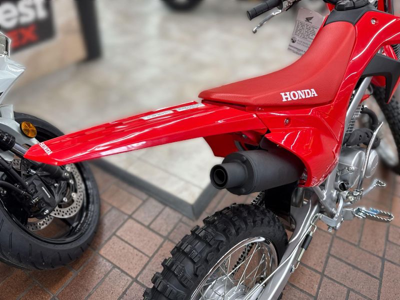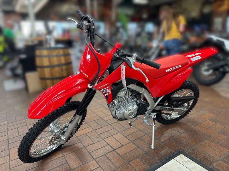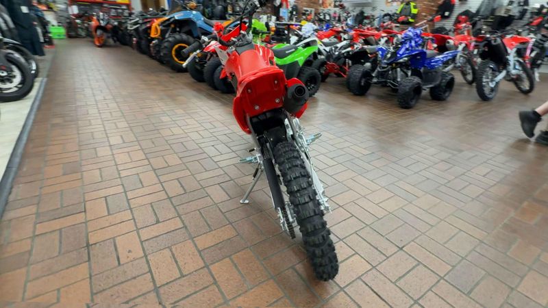 With user-friendly power, legendary Honda reliability, and big bike-style manual clutch, the CRF125F is ready for riders on the rise. Available in both standard and Big Wheel trims, it features fuel injection, electric start, and a durable four-stroke engine—perfect for stepping up or anyone ready to hit the trail and never look back.