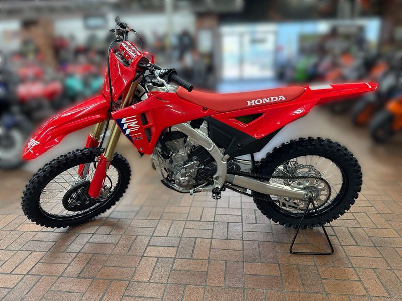 Honda’s CRF250R is a purpose-built racer straight from the front lines of pro motocross and supercross. With its torque-hungry engine, razor-sharp chassis, and championship-winning factory DNA, it’s made to thrive under pressure. Every jump, every corner, every gate drop—it’s why champions Ride Red.